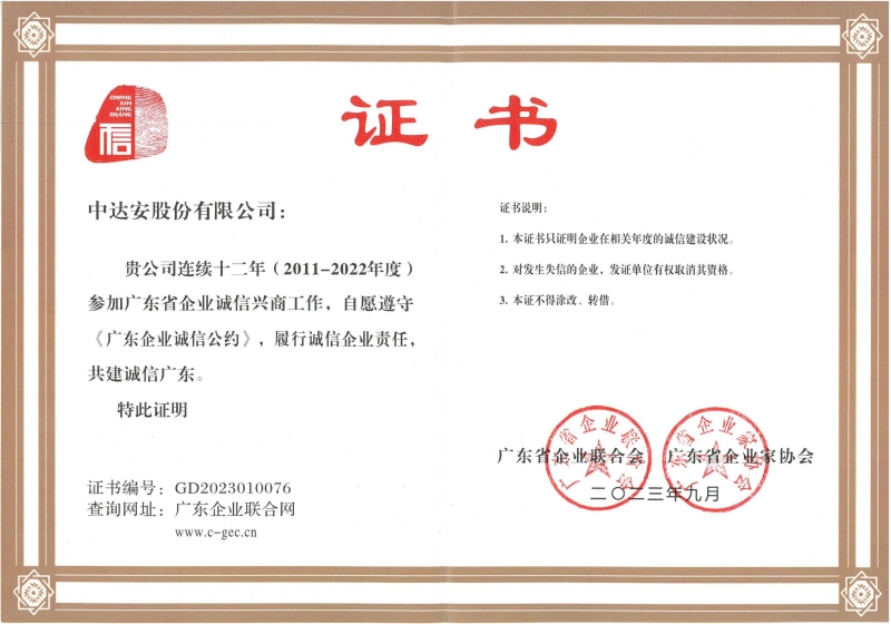 卓越的項目管理技術(shù),先進的信息化建設系統(tǒng),使我們的產(chǎn)品,以其科學合理的構(gòu)思,嚴格到位的管控,贏得客戶的高度認同,收獲了許多榮譽和權(quán)威認可:中達安營業(yè)收入自2012年起一直在全國同行中名列前茅,多次躋身前十強;并獲得國家高新技術(shù)企業(yè)、國家工商總局“守合同重信用”企業(yè)、廣東省誠信示范企業(yè)、廣州市總部企業(yè)、廣州市納稅信用A級企業(yè)等多項榮譽;成為中國招標投標協(xié)會理事單位、中國建設監(jiān)理協(xié)會常務理事單位、中國工程咨詢協(xié)會理事單位、廣東省通信行業(yè)協(xié)會常務理事單位、廣東省建設監(jiān)理協(xié)會常務理事單位、廣東省工程咨詢協(xié)會常務理事單位。